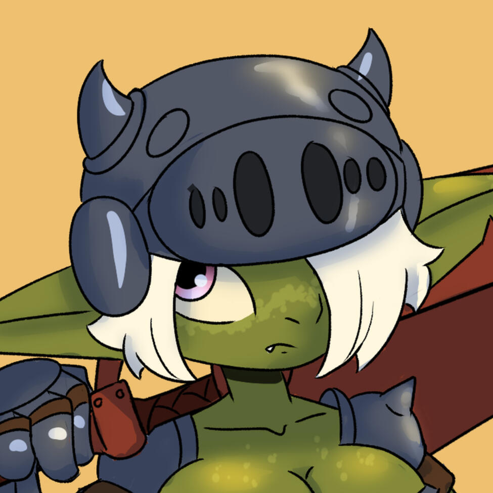 Mala was a member of a tribe of goblins, acting as her tribes priestess and princess. after being rescued from a basilisk by the adventurer Mako, and him accidently proposing to her, she began the life of an adventurer to follow the clueless adventurer. she is accompanied by her Fire spirt familiar bound to her mask. Along the way she also met the awakened owl bear Atalanta and now the three work together as a surprisingly competent adventuring party.
